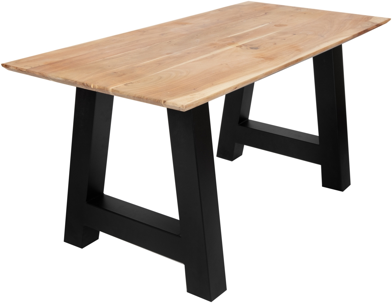 Trendiger Esstisch Amalie, 220 x 100 cm, 26 mm Tischplatte, Akazienholz massiv + naturfarben, A-Gestell Schwarz : Schweizer Kante – Das Highlight der Tischplatte bildet die Schweizer Kante. Tischplatten mit Schweizer Kante zeichnen sich dadurch aus, dass sie nach unten schmäler werden. Die Tischplatte hat dadurch ein elegantes und „schwebendes“ Design. Hochwertiges Unikat – Der Esstisch besteht aus massivem und robustem Akazienholz. Aufgrund der einzigartigen Maserung erhalten Sie ein Unikat mit individuellem Charakter. Unsere Tische sind geschliffen und lackiert, ansonsten aber völlig naturbelassen. Das A-Gestell sorgt für einen sicheren und wackelfreien Stand des Tischs. Kleine herausdrehbare Kunststofffüßchen an den Tischbeinen schützen den Boden vor Kratzern. Ausgezeichnete Verarbeitung – Die gesamte Verarbeitung dieses charismatischen und edlen Naturholzes ist sehr schonend sowie naturgerecht, wodurch die Möbel atmungsaktiv bleiben und eine gesunde Wohlfühl-Atmosphäre schaffen. Pflegeleicht – Die Oberfläche lässt sich leicht reinigen und pflegen. Verschmutzungen können mit einem mäßig feuchten Tuch problemlos entfernt werden. Regelmäßige Pflege erhält die natürliche Frische und die edle Ausstrahlung des Möbelstücks. Qualität & Langlebigkeit – Die ausgezeichnete Qualität der verwendeten Materialien und ihre sorgfältige Verarbeitung machen den Küchentisch besonders langlebig und sehr stabil. Ideal passt der Tisch zu rustikalen und modernen Einrichtungen oder Möbel im Industrial-Look. Maßangaben: : Gesamtlänge: ca. 220 cm Gesamtbreite: ca. 100 cm Gesamthöhe: ca. 77 cm Materialstärke: ca. 2,6 cm: : Der Artikel wird teilmontiert geliefert, lediglich die Füße müssen montiert werden.