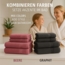 Hochwertiges 12-teiliges Handtuch-Set von Betz aus 100% Baumwolle in den Farben Graphit und Beere. Das Set umfasst zwei Duschtücher (70 x 140 cm), vier Handtücher (50 x 100 cm), zwei Gästetücher (30 x 50 cm), zwei Seiftücher (30 x 30 cm) und zwei Waschhandschuhe (16 x 21 cm). Mit einer Grammatur von 470 g/m² bietet es flauschige Weichheit und hohe Saugkraft. Pflegeleicht und waschbar bis 60°C, ist es ideal für den täglichen Gebrauch.