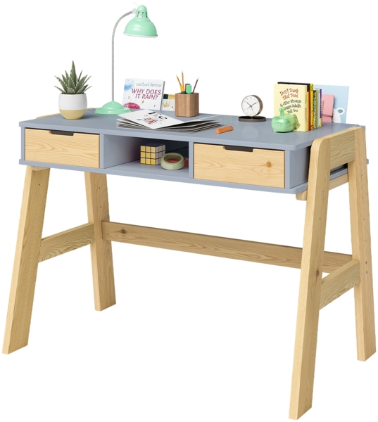 Bellabino 'Campo' Kinderschreibtisch, blau, 4-fach höhenverstellbar 56-75 cm, Jugendschreibtisch mit 2 Schubladen und 3 Aufbewahrungsfächern, 75x63x93 cm