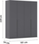 Der Rauch Möbel Alabama Kleiderschrank ist ein praktischer und moderner 4-türiger Garderobenschrank in Grau metallic und Schwarz. Mit seinen Abmessungen von 181 x 229 x 54 cm bietet er ausreichend Stauraum für Kleidung und Accessoires. Die höhenverstellbaren Einlegeböden und Kleiderstangen ermöglichen eine individuelle Anpassung des Stauraums. Der Schrank überzeugt durch sein schlichtes Design und lässt sich harmonisch in verschiedene Wohnstile integrieren.
