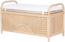 Die Truhenbank aus geflochtenem Rattan überzeugt durch ihr natürliches Design und das ansprechende grafische Sonnenmuster. Mit einer weichen Stoffsitzfläche bietet sie hohen Komfort und verbirgt gleichzeitig praktischen Stauraum. Ideal für Eingangsbereiche, Schlafzimmer oder Wohnzimmer, fügt sie sich harmonisch in ein warmes Ambiente ein.