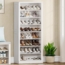 Der freistehende Schuhschrank bietet mit seinen kompakten Abmessungen von 62,5 x 30,5 x 145,5 cm viel Stauraum für 21–24 Paar Erwachsenenschuhe. Das elegante Design fördert die Luftzirkulation und verhindert unangenehme Gerüche. Hergestellt aus stabilen Holzspanplatten, trägt jede Regalplatte bis zu 18,2 kg. Die einfache Selbstmontage und die klare Anleitung machen den Aufbau zum Kinderspiel.