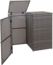 Jedes Abteil dieser Mülltonnenbox ist für handelsübliche Mülltonnen mit einem Fassungsvermögen von 80 bis 120 Litern ausgelegt. Praktischerweise können Sie die Deckel oben separat von den Türen öffnen. Die Deckel sind mit Halterungen ausgestattet, damit bleiben sie offen stehen und erleichtern Ihnen das Befüllen der Mülltonnen. Da die Rückwand verkleidet ist, kann der Mülltonnenschrank auch frei aufgestellt werden und lässt keine Wünsche offen.