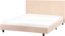 Klassisches Polsterbett Bouclé ALBI in Beige mit einem sehr hohen Kopfteil. Dieses stilvolle Doppelbett vereint zeitloses Design und hohen Komfort. Die strapazierfähige Bouclé-Polsterung sorgt für ein angenehmes Gefühl, während der Lattenrost eine gleichmäßige Gewichtsverteilung für gesunden Schlaf bietet. Mit stabiler Konstruktion und schlichten schwarzen Metallbeinen fügt sich das Bett harmonisch in jeden Einrichtungsstil ein.
