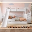 90 x 200 über 140 x 200 Etagenbett mit Schubladen, Stauraum und Rutsche, multifunktional, weiß