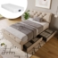 Dieses stilvolle Polsterbett mit einer Liegefläche von 90x200 cm kombiniert elegantes Scroll-Design mit praktischen Funktionen. Das höhenverstellbare Kopfteil (104–110 cm) sorgt für individuellen Komfort, während zwei geräumige Schubladen zusätzlichen Stauraum bieten. Die robuste Konstruktion aus Massivholz, Leinen und Metall garantiert Stabilität und Langlebigkeit. Inklusive einer 7-Zonen-Kaltschaummatratze für optimalen Schlafkomfort.
