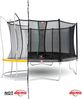Das Trampolin von Berg ist mit GoldSpring-Solo-Federn ausgestattet, die besonders hohen Springkomfort gewährleisten. Die dicke PVC-Schicht, die den Trampolinrahmen ummantelt, bietet dem Gestell einen guten Schutz gegen Regen und Kälte. Das Sicherheitsnetz mit selbstschließendem Eingang mit gut sichtbarer Biese und dicken Schaumstoffpolstern um die Pfosten ist von hoher Qualität. Sowohl Trampolin als auch Sicherheitsnetz sind durch die Konstruktion, die Stahlklammern und die Montagekomponenten sehr stabil.