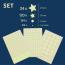 - Fluoreszierende Sterne in 3 Größen: 24 große Sterne (Ø 25 mm), 120 mittlere Sterne (Ø 15 mm), 154 kleine Sterne (Ø 10 mm), und 154 Mikroquadrate (4 x 4 mm)