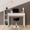 Praktischer ML-DESIGN Schreibtisch mit integriertem Regal und einem stilvollen Sitzhocker. Die großzügige Ablagefläche in Sonoma-Eichen-Optik und die Materialstärke von 15 mm bieten hohe Funktionalität. Der höhenverstellbare Hocker (52 cm bis 65 cm) sorgt für individuellen Komfort und ist ideal für verschiedene Wohnbereiche. Diese Möbelkombination vereint modernes Design und hohe Qualität.