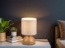 - Stilvolles Design mit abgerundetem Fuß und zylindrischem Stoffschirm