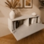 Das Platan Room Lowboard Kira vereint attraktives Design mit praktischer Funktionalität. Der puristisch gestaltete TV-Schrank ist in den Breiten 105 cm, 140 cm, 210 cm und 280 cm erhältlich und bietet hinter der Klappe nützlichen Stauraum. Gefertigt aus hochwertiger, stabiler Spanplatte mit pflegeleichter Beschichtung, ist das Lowboard sowohl strapazierfähig als auch stilvoll.