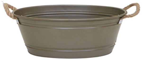 colourliving Pflanzkübel Pflanztopf "Beat" oval aus Metall Blumentopf XL 64x42x25 cm, mit Kordelgriffen aus Naturmaterial