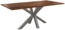 Der Esstisch "Felina" aus massiver Akazie mit Baumkante in nussbaumfarben und einem silbernen Spider-Gestell vereint Natürlichkeit und modernen Stil. Die 26 mm dicke Holzplatte mit echter Baumkante und die individuelle Holzmaserung machen jedes Exemplar zu einem Unikat. Das stabile Metallgestell sorgt für hohe Standfestigkeit und verleiht dem Tisch einen industriellen Look.