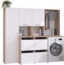 Das Mehrzweckschrank-Set Parisot Laundry 2 in Eiche Dekor und Weiß bietet Ihnen eine stilvolle und praktische Lösung für Ordnung in Ihrem Hauswirtschaftsraum oder Ihrer Waschküche. Mit einer Gesamtbreite von 204 cm und einer Höhe von 184 cm bietet es großzügigen Stauraum für Kleidung, Haushaltsutensilien sowie Platz für Waschmaschine und Trockner. Das Set besteht aus drei Hochschränken, die mit Kleiderstangen und offenen sowie geschlossenen Fächern ausgestattet sind.