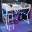 Hochbett mit Schreibtisch und LED-Beleuchtung (90x200 cm) Kinderbett mit Rausfallschutz, Metallbett Bild 1