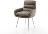 Der Armlehnstuhl Abelia-Flex mit Armlehnen in Taupe Vintage und 4-Fuß konisch aus Edelstahl überzeugt mit elegantem Design und hohem Sitzkomfort. Die Mikrofaser-Sitzschale ist nicht nur zeitlos schön, sondern auch robust und leicht zu reinigen. Perfekt für gemütliche Stunden im Essbereich.