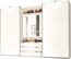 mittig: oben 1 offenes Fach und 1 drehbares Spiegelelement (dahinter 3 offene Fächer), variabel rechts/links angeschlagen montierbar; unten 3 Schubkästen