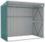 Das an der Wand montierte Gartenhaus in Grün aus verzinktem Stahl bietet mit Maßen von 118 x 194 x 178 cm ausreichend Platz für Werkzeuge und Gartenmöbel. Die doppelt zu öffnenden Türen erleichtern den Zugang, während der Kunststoffgriff mit Schlossfunktion die Sicherheit gewährleistet. Regenwasser fließt dank des schrägen Dachs automatisch ab.
