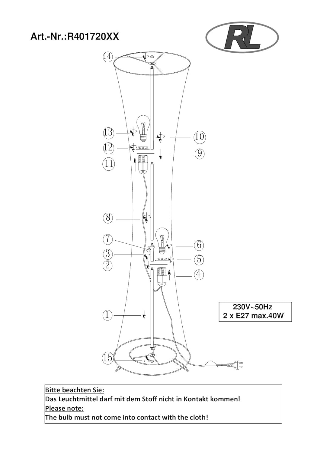 - Leuchtmittel nicht im Lieferumfang enthalten