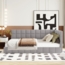 Dieses Polsterbett in der Größe 140x200 cm vereint elegantes Mid-Century-Modern-Design mit hohem Sitz- und Liegekomfort. Der samtähnliche Bezugsstoff in Grau und das weich gepolsterte Kopfteil schaffen eine gemütliche Atmosphäre. Das multifunktionale Tagesbett lässt sich schnell vom Bett zum Sofa umwandeln und ist ideal für Gästezimmer oder kleine Wohnungen. Der mitgelieferte Lattenrost sorgt für eine solide Liegefläche, während die stabile Unterkonstruktion aus Sperrholz und MDF Langlebigkeit garantiert.