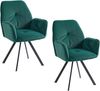 Die MEUBLE COSY Esszimmerstühle im 2er Set sind drehbare Polsterstühle mit Armlehnen, die Komfort und Stil in Ihr Zuhause bringen. Der elegante Samtbezug in Grün und die stabilen Metallbeine machen diese Stühle ideal für Esszimmer, Wohnzimmer oder Arbeitszimmer. Mit einer Sitzbreite von 49 cm und einer Höhe von 87,5 cm bieten sie eine angenehme Sitzgelegenheit.