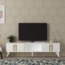 Der Hanah Home elegante TV-Ständer in Weiß und Gold ist die perfekte Ergänzung für moderne Wohnzimmer und Unterhaltungsbereiche. Mit großzügigen Abmessungen von 150 cm Breite, 44,6 cm Höhe und 29,6 cm Tiefe bietet er ausreichend Platz für Ihren Fernseher und zusätzliches Medienzubehör. Hergestellt aus 100 % melaminbeschichtetem Spanplattenmaterial, ist er langlebig und widerstandsfähig gegen Kratzer und Flecken. Die stilvolle Kombination aus Weiß und Gold verleiht Ihrem Raum einen eleganten Touch.