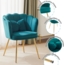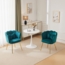 Eleganter 2er Set Samt Blütenblatt Sessel mit vergoldeten Metallbeinen. Dieser bequeme Polstersessel in Grün vereint Ästhetik und Komfort. Die ergonomische Rückenlehne und die komfortable Sitzfläche mit Kissenunterstützung bieten hervorragende Unterstützung. Die sanften Rundungen und die feine Kanalsteppung verleihen dem Sessel eine luxuriöse Ausstrahlung, während die robusten, vergoldeten Metallbeine für Stabilität sorgen.