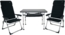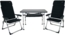 Das Stuhl- und Tischset Valencia gepolstert ist ideal für kleinere Wohnmobile, Kastenwagen und Vans. Es umfasst zwei Campingstühle mit verstellbarer Rückenlehne und Kopfteil sowie einen wetterfesten Campingtisch in der Größe 101x65 cm. Das Set ist sowohl funktional als auch komfortabel und bietet eine hohe Belastbarkeit von bis zu 140 kg für die Stühle und 50 kg für den Tisch.