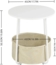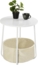 Kompakter und moderner runder Beistelltisch mit einem Durchmesser von 45 cm und einer Höhe von 50 cm. Der Tisch bietet mit einem praktischen Stoffspeicherkorb (43x18 cm) ausreichend Stauraum für Zeitschriften oder Decken. Die einfache, werkzeugfreie Montage ermöglicht eine schnelle Einrichtung in nur 5-10 Minuten. Das minimalistische Design mit mattem Metallgestell und einstellbaren Anti-Kratz-Füßen passt perfekt zu verschiedenen Einrichtungsstilen.