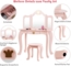 Stabile und sichere Tischkonstruktion: Unser Schminktisch Set besteht aus hochwertigem, langlebigem MDF, das besonders robust ist und sich gleichzeitig nicht verformt oder reißt. Die Tisch- und Stuhlbeine bestehen aus festem Kiefernholz, das die Tragfähigkeit und Stabilität entscheidend erhöht. Dreifach ausklappbarer Spiegel und praktische Schublade: Der dreifach ausklappbare Spiegel mit klarer Kontur zeigt das süße Gesicht Ihres Kindes deutlich, sodass es das Make-up und die Frisur aus allen Winkeln betrachten kann. Wenn der Schminkspaß vorbei ist, können Haargummis, Stirnbänder, Kämme, Nagellacke und mehr in der Schublade verstaut oder ordentlich auf der großzügigen Tischplatte abgelegt werden. Vielseitiges und sicheres Design: Der Frisiertisch ist mit einer abnehmbaren Tischplatte ausgestattet, sodass Ihr Kind ihn bei Bedarf auch als Schreibtisch oder Lesetisch verwenden kann. Abgerundete Ecken und gratfreie Oberflächen verhindern, dass sich Ihr Kind versehentlich verletzt. Der Tisch verfügt außerdem über ein Anti-Umfall-Design und kann zur zusätzlichen Sicherheit an der Wand befestigt werden. Perfektes Geschenk für kleine Mädchen: Jedes Mädchen träumt davon, eine Prinzessin zu sein und sich schön zu schminken. Unser Schminktisch Set besticht durch sein wunderschönes Design, das eine Krone über dem Spiegel umfasst, damit sich Ihr Kind wie eine echte Prinzessin fühlen kann. Dieses Set ist das ideale Geschenk für Geburtstags- oder Weihnachtsfeiern. Einfach zu montieren und zu reinigen: Die Montage ist einfach, da alle notwendigen Teile, Werkzeuge und eine detaillierte Anleitung enthalten sind. Sie müssen lediglich die Beine und den Spiegel anbringen. Die glatte Oberfläche ist leicht zu reinigen, Flecken können mit einem feuchten Tuch schnell entfernt werden.