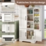 Merax Küchenschrank mit LED-Sensorlicht, großer 4-türiger Aufbewahrungsschrank mit verstellbaren Regalböden & Türablagen, weiß Bild 1