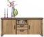 Das Sideboard Farmland vereint klassischen Landhausstil mit modernem Design. Die natürliche Ausstrahlung des Eichenfurniers mit sichtbarer Maserung, in Verbindung mit metallenen Griffen und Akzenten, verleihen dem Möbelstück eine besonders markante Note. Im Innenraum finden Sie Platz für die nützlichen Dinge des Alltags, während die Oberfläche und ein offenes Fach mit integrierter LED-Beleuchtung, als Stellplatz für Wohnaccessoires, Deko und Pflanzen dient. Zur festen Ausstattung gehört zudem ein Soft-Closing-System für Türen und Schubladen, wodurch ein materialschonendes und geräuscharmes Schließen ermöglicht wird.