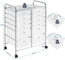 Dieser praktische Beistellwagen von Yaheetech bietet mit seinen 12 Schubladen, darunter 4 große und 8 kleine, eine ideale Lösung zur Organisation Ihrer Kleinteile. Das Metallgestell sorgt für Stabilität, während die 360° drehbaren Rollen eine einfache Mobilität ermöglichen. Mit einem Aufstellmaß von 63 cm L × 38,5 cm B × 82 cm H ist dieser Rollwagen vielseitig einsetzbar, sei es im Badezimmer, in der Küche oder im Schlafzimmer.