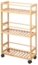 Das Kipit Regal aus hochwertigem Bambus bietet mit seinen kompakten Abmessungen von 75 x 44,5 x 20 cm eine praktische Lösung für die Aufbewahrung in engen Räumen. Die vier Regalböden (42 x 3 x 20 cm) mit einem Abstand von 26 cm ermöglichen die flexible Aufbewahrung verschiedener Gegenstände. Dank der Rollen ist das Regal mobil und kann mühelos in Küche, Badezimmer oder Wohnzimmer bewegt werden.