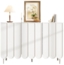 Modernes weißes Sideboard mit wellenförmigen Türen und einem grifflosen Rebound-System. Mit den Abmessungen von 120 x 35 x 80 cm bietet es flexiblen Stauraum für Wohnzimmer, Flur und Esszimmer. Die höhenverstellbaren Mittelbeine sorgen für einen stabilen Stand, während die individuell verstellbaren Regalböden für Ordnung sorgen. Ein elegantes Möbelstück, das sich in jeden Raum perfekt einfügt.