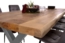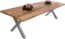 Trendiger Esstisch mit Baumkante aus massivem Mangoholz, 280 x 100 cm, und silbernem X-Gestell. Die aufgedoppelte Tischplatte (25 + 25 mm) sorgt für ein geringeres Gewicht und eine ansprechende Optik. Die natürlichen Baumkanten verleihen dem Tisch einen einzigartigen Charakter. Ideal für 4-6 Personen, schafft dieser Tisch eine gemütliche Atmosphäre in Ihrem Esszimmer.