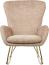 Eleganter Schaukelsessel ANASET aus sandbeigem Bouclé-Stoff mit goldenen Metallbeinen. Der Sessel bietet eine große Rückenlehne und eine breite Sitzfläche, ideal zum Entspannen. Mit einem Gewicht von 14 kg und einer maximalen Belastung von 250 kg ist er sowohl strapazierfähig als auch pflegeleicht. Perfekt für Wohnzimmer, Schlafzimmer oder Kinderzimmer.