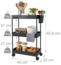 Vielseitiger Rollwagen mit 3 Ebenen, ideal für Küche, Bad, Büro oder Hobbyraum. Mit 360° drehbaren Rollen und zwei Rollen mit Bremse bietet er hohe Mobilität und sicheren Stand. Die Gesamtmaße betragen ca. 62,5 x 40 x 22 cm, mit einem Abstand zwischen den Ablagen von ca. 21 cm. Die Regalböden sind separat nutzbar, z. B. als Abtropfgestell.