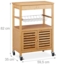 Der Relaxdays Küchenwagen aus Bambus ist ein praktischer Helfer in Ihrer Küche. Mit Abmessungen von ca. 82 x 59,5 x 35 cm bietet er ausreichend Platz für Geschirr, Obst und Gemüse. Der Wagen verfügt über 2 Ablagen, 1 Schublade, 1 Korb und 1 Schrankfach, die für Ordnung sorgen. Dank der 360 Grad drehbaren Rollen lässt er sich mühelos bewegen, während die Bremsen für einen sicheren Stand sorgen.