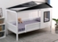Dieses verspielte Kinderbett Tessa aus massivem Kiefernholz bietet einen sicheren und gemütlichen Schlafplatz für Ihr Kind. Mit einem offenen Schrägdach und einem kleinen Fenster ist es einem kleinen Häuschen nachempfunden und fördert die Fantasie. Der umlaufende Rausfallschutz sorgt für Sicherheit, während die Öffnung den selbstständigen Ausstieg ermöglicht. Im Lieferumfang ist ein passender Rollrost enthalten.