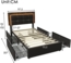 Dieses Polsterbett mit einer Liegefläche von 90x200 cm vereint modernes Design und praktische Funktionalität. Der elegante PU-Bezug in Schwarz und das gesteppt wirkende Kopfteil schaffen eine warme Atmosphäre. Mit einer integrierten LED-Beleuchtung, die per Fernbedienung steuerbar ist, und vier geräumigen Schubladen bietet das Bett sowohl Komfort als auch Stauraum. Das verstellbare Kopfteil unterstützt verschiedene Sitz- und Ruhepositionen und sorgt für ein angenehmes Erlebnis.