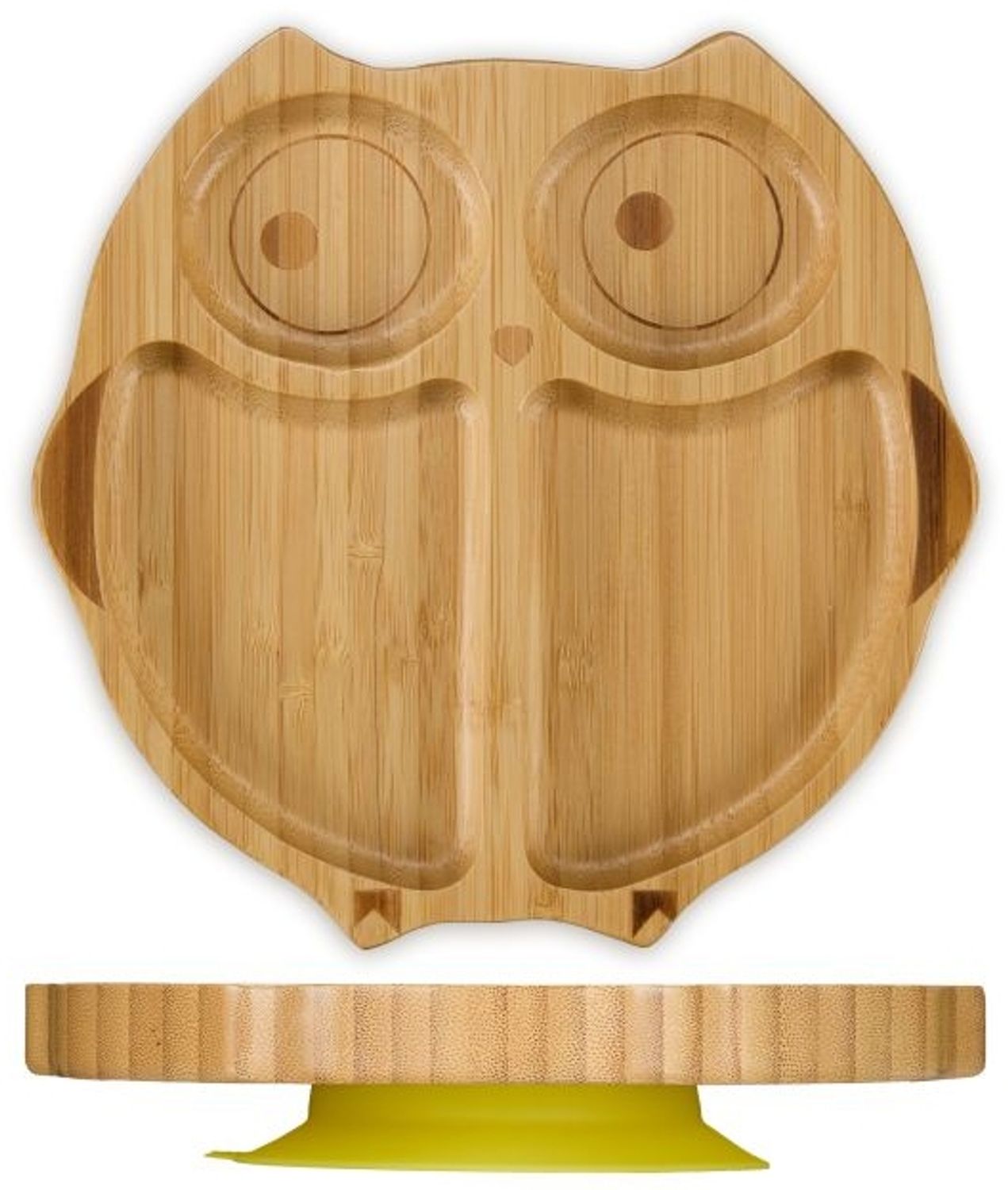 Der Baby-Teller mit Saugnapf "Eule" 10049288 aus schadstofffreiem Bambus sorgt für Freude am Familientisch und minimiert das Risiko von herumfliegendem Essen. Die niedliche Eulenform und die 4 Fächer laden Kleinkinder ein, neue Speisen zu entdecken. Ideal als Geschenk zur Geburt oder zum Beikoststart.