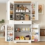 Der moderne Küchenschrank bietet mit seinen 12 Türfächern und Schubladen eine optimale Lösung zur Aufbewahrung von Snacks und Alltagsgegenständen. Hergestellt aus hochwertigen MDF- und Spanplatten, überzeugt er durch eine natürliche Holzoptik und langlebige Metallbeschläge. Mit den Abmessungen 80 x 40 x 180 cm und einem Gewicht von 52 kg ist er stabil und sicher. Das nach EU-Sicherheitsnormen zertifizierte Anti-Kipp-System sorgt für zusätzlichen Schutz, besonders in Haushalten mit Kindern und Haustieren.