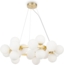 Die Maytoni Pendelleuchte Dallas ist ein modernes Designstück, das die Molekularstruktur nachahmt. Die Höhe der Pendelleuchte kann durch die Seile individuell eingestellt werden, sodass sie perfekt in jeden Raum passt. Mit einer Gesamthöhe von 43,8 - 135,4 cm und einer Pendellänge von 20 - 120 cm bietet sie eine beeindruckende Präsenz. Der Durchmesser der Leuchte beträgt 69 cm, während die Kugeln einen Durchmesser von 12 cm haben. Die Deckenschale hat eine Höhe von 2,5 cm und einen Durchmesser von 12 cm. Die Pendelleuchte ist in den Farben Gold und Mattweiß erhältlich und besteht aus hochwertigem Metall und Glas. Sie wird ohne Lichtquelle geliefert und verfügt über einen Sockel für G9 Leuchtmittel. Die maximale Leistung beträgt 25x28 W und die Spannung liegt zwischen 220 - 240 V. Die Pendelleuchte hat die Schutzart IP20 und gehört zur Schutzklasse I.