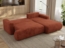 Entdecken Sie das Ecksofa OVO mit Schlaffunktion und Bettkasten in einem eleganten orangefarbenen Plüsch. Mit den Abmessungen von 271 x 195 cm bietet es nicht nur ausreichend Platz zum Sitzen, sondern auch eine großzügige Schlaffläche von 200 x 155 cm. Die Kombination aus elastischem HR-Schaumstoff und langlebigen Wellenfedern sorgt für optimalen Sitzkomfort. Der praktische Bettkasten und der benutzerfreundliche DL-Automat machen dieses Sofa zur idealen Wahl für Ihr Wohnzimmer.