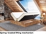 - Zwei seitlich zu öffnende Bettkästen mit Federmechanismus