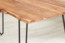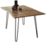 Der Esstisch "Hannah" vereint Natürlichkeit und modernes Design. Mit einer massiven Tischplatte aus Akazienholz (90 x 90 cm) und einer echten Baumkante ist jeder Tisch ein Unikat. Das mattschwarze Hairpin-Gestell aus Roheisen sorgt für Stabilität und einen industriellen Look. Die pflegeleichte, 26 mm dicke Tischplatte ist mit Klarlack versiegelt und bietet eine einzigartige Holzmaserung.