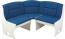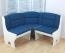 Praktische Truheneckbank "Josef I" mit einem Schenkelmaß von 125 x 125 cm, ideal für Ihr Esszimmer. Hergestellt aus hochwertigen, kunststoffbeschichteten Spanplatten und einem strapazierfähigen Melamin-Holzdekor in Weiß, bietet sie nicht nur Langlebigkeit, sondern auch einen integrierten Stauraum unter den aufklappbaren Sitzflächen. Die bequeme, schaumstoffgepolsterte Sitz- und Rückenfläche sowie der trendige blaue Stoffbezug sorgen für zusätzlichen Komfort.