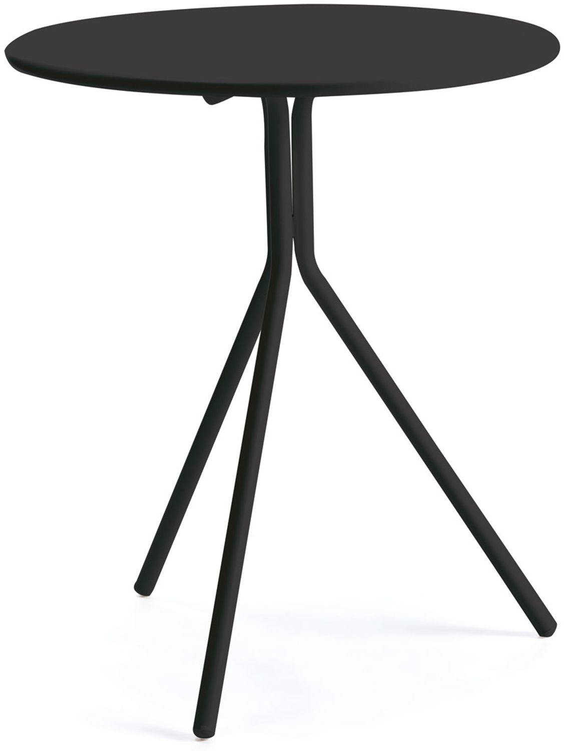 Runder Beistelltisch Rick Ø 65 cm in Schwarz. Dieser stilvolle Tisch eignet sich ideal für Loungebereiche oder als praktische Ablage neben dem Esstisch. Die besondere Formgebung mit drei auseinandergehenden Tischbeinen verleiht ihm eine einzigartige Note. Dank der galvanisch verzinkten Oberfläche bietet der Tisch optimalen Rostschutz und ist sowohl für den Innen- als auch für den Außenbereich geeignet.