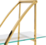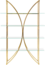 Edles Bücherregal mit 4 Fächern in Gold, das durch seine elegante Glasböden und die goldene Edelstahl-Konstruktion besticht. Die bogenförmige Silhouette und das glänzende Finish verleihen jedem Raum eine glamouröse Note. Mit einer Höhe von 175 cm und einer Breite von 120 cm bietet es ausreichend Platz für Ihre Bücher und Dekorationselemente. Verstellbare Sockelfüße sorgen für Standsicherheit und eine maximale Belastung von 5 kg pro Fach.